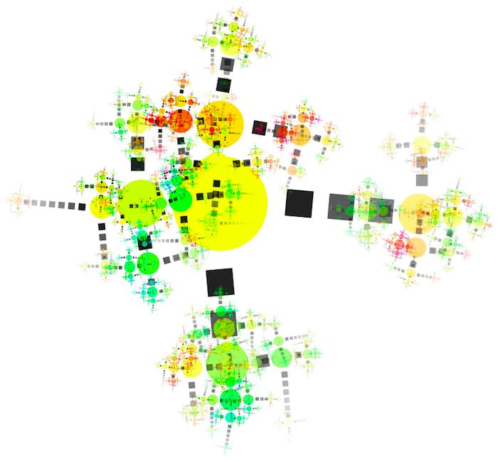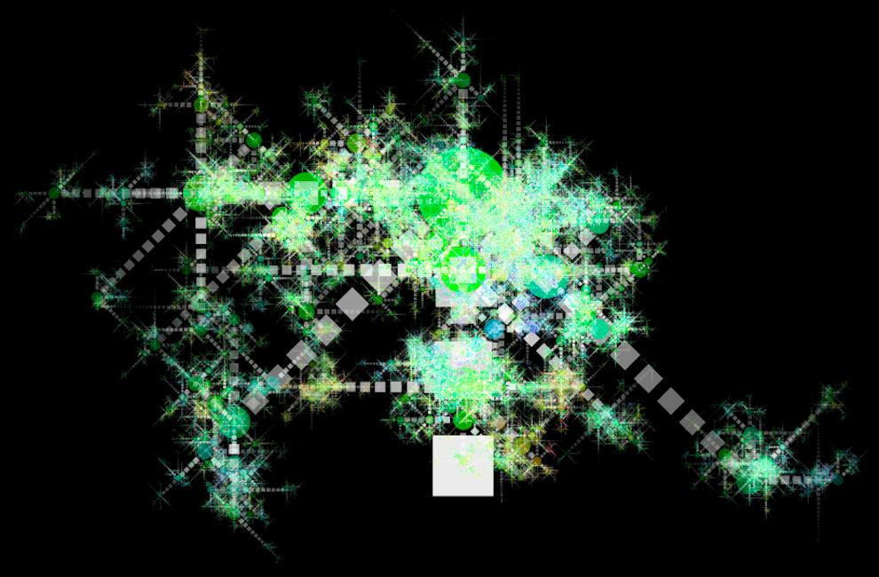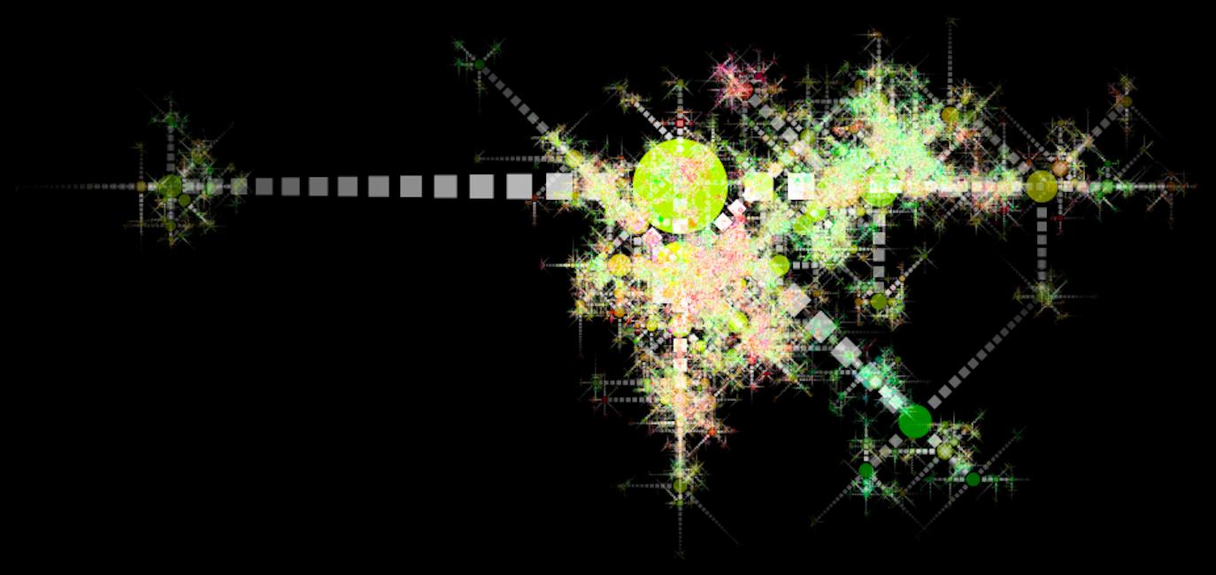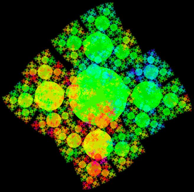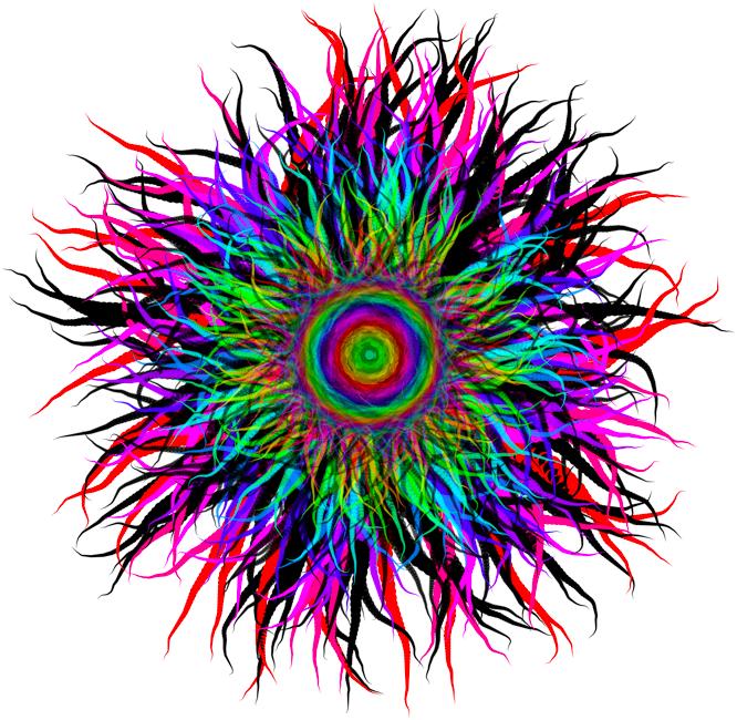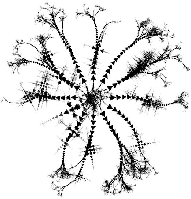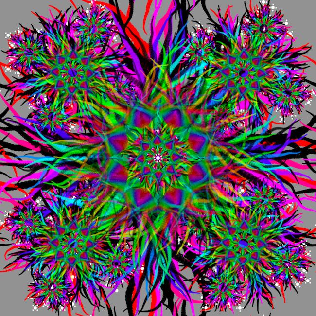 rule SPRIT .05 { TRIANGLE{} SPROOT{} } rule SPROOT { SPREET{x sin(0) y cos(0)} SPREET{x sin(90) y cos(90) r 90} SPREET{x sin(180) y cos(180) r 180} SPREET{x sin(270) y cos(270) r 270} } rule SPREET { TRIANGLE{b 0 sat .5 h 100} SPREET{y 1size .8 a -.2} } rule SPREET .1 { SPROOT{} }